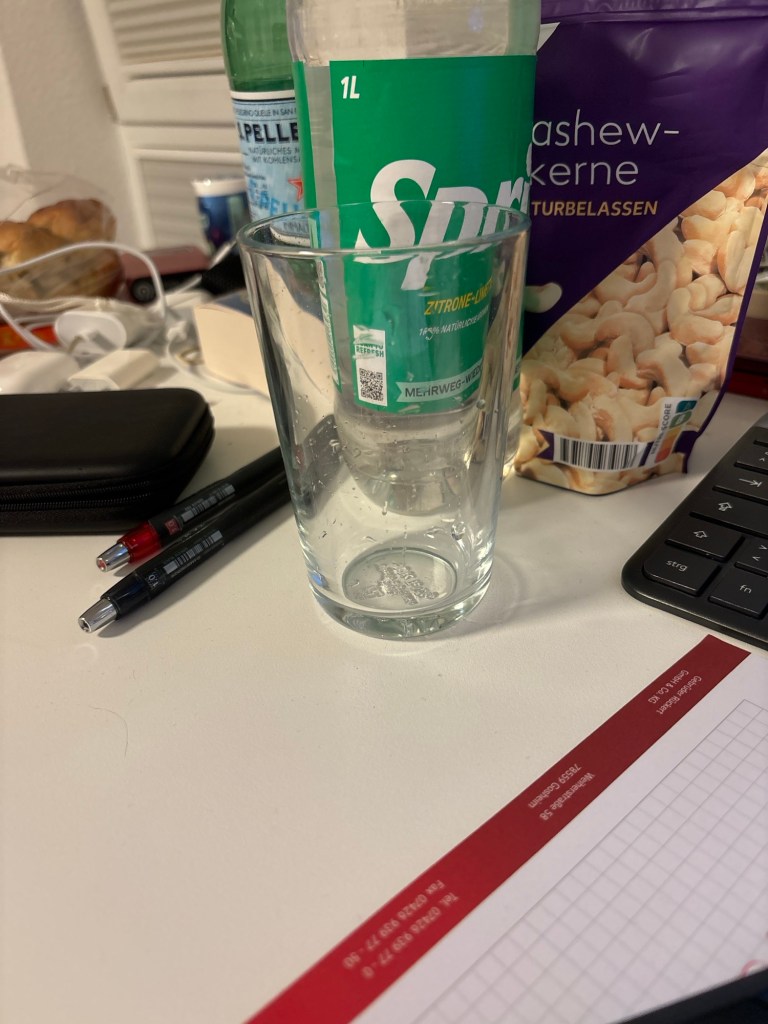 Hab bei Timo noch 1 1/2 Gläser getrunken und gerade bei mir auch aber das hab ich vergessen zu fotografieren bevor wir gespült haben^^‘ aber hab auf jeden Fall mehr geschafft als geplant^^